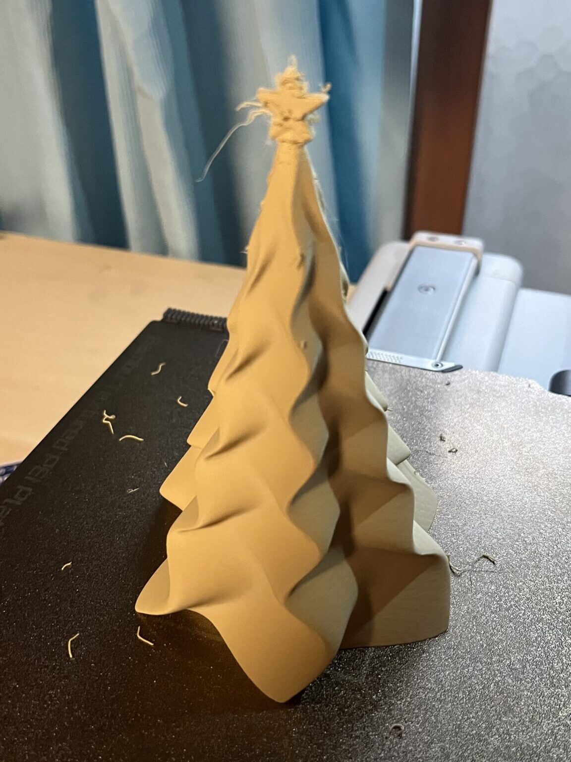 もしかすると僕の機械の個体の問題かも知れませんが、ミニスノーマンの頭とか、このツリーのような「小さな突起」のプリントでは「草が生えます」笑