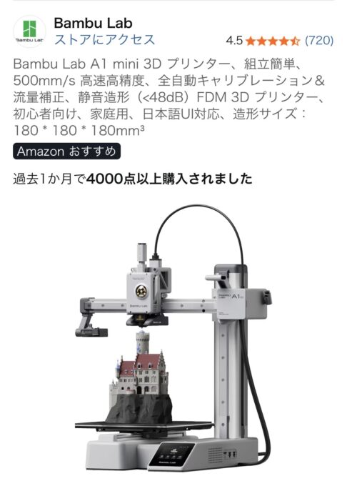 そういうわけで、話題?の3DプリンターバンブーA1ミニを購入してみました。