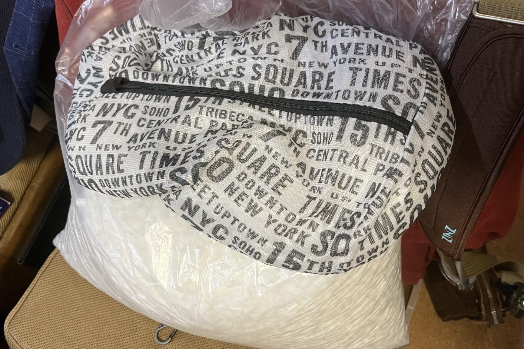 やり方は簡単、用意した「枕型の袋」に、パイプをザルか何かですくって入れて「良い感じの高さ」にするだけです。