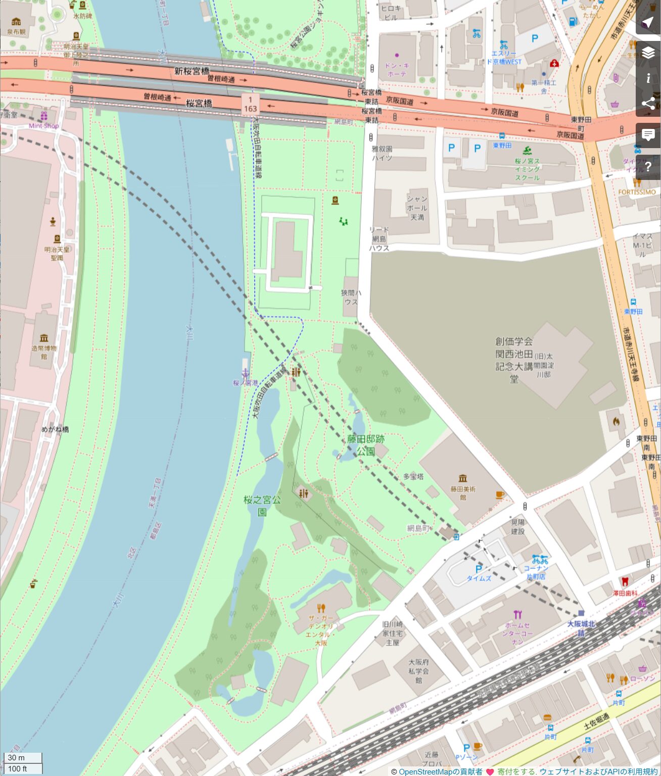 トイレは藤田邸跡公園の大川側の入り口付近が最寄り(2021年新築なのでキレイただペーパーがありません)、次いで「藤田邸跡公園10-16:00」内、コーナン-20:00になります。(ガッツがあればガーデンオリエンタルも)